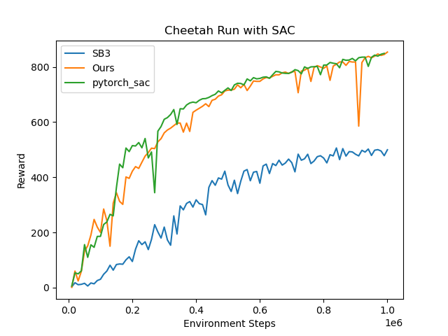 | SAC | SB3 | pytorch_sac | Ours |